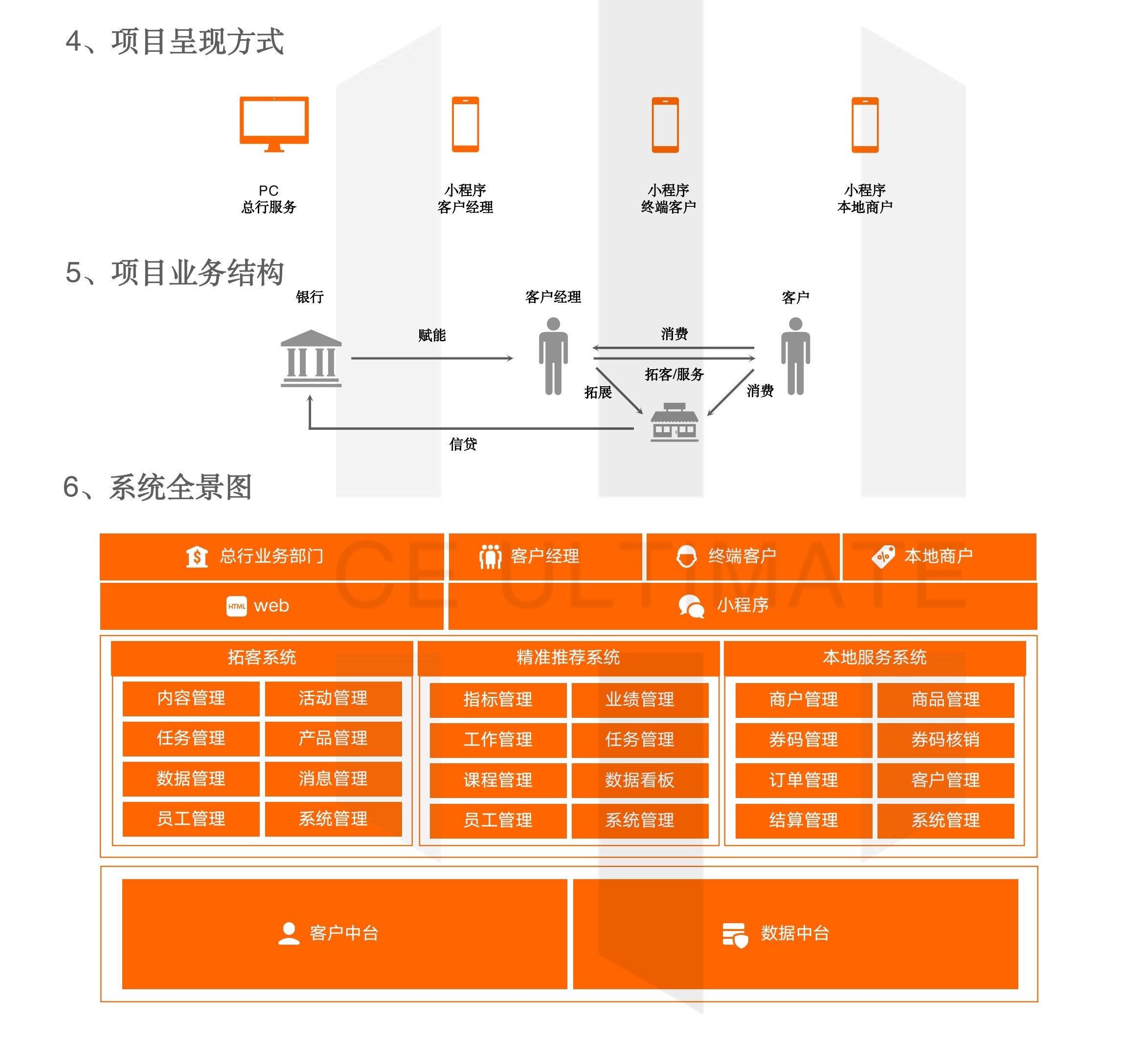 客戶在系統(tǒng)平臺(tái)中享受銀行整 體業(yè)務(wù)服務(wù)。幫助客戶完成福 利、購物、本地消費(fèi)等服務(wù)內(nèi) 容。同時(shí)建立一體化客戶等級(jí) 和權(quán)益機(jī)制,并幫助客戶一站 式福利兌換。平臺(tái)在過程中不 斷引導(dǎo)客戶逐漸完成福利任 務(wù),從而提高客戶粘性。