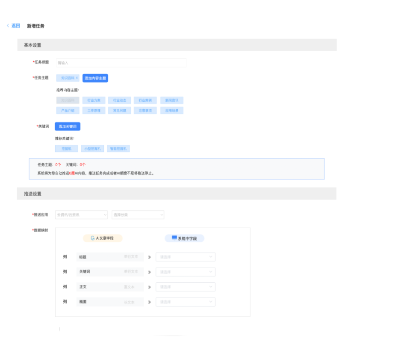 ? 設(shè)置生成任務(wù),生成要求、指定發(fā)布的應(yīng)用、設(shè)定頻率與狀態(tài)。